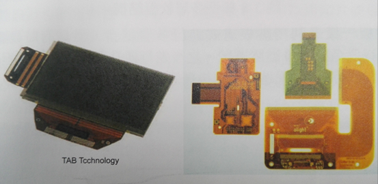 為了能進行組裝并搭配顯示器、特殊裝置連接,業(yè)者發(fā)展出特殊組裝結構。比較早的結構采用卷帶自動結合技術(TAB-Tape Automation Bonding)進行晶片組裝,之后為了能提升結合密度而改用FPC覆晶組裝(COF-Chip on Fiex)做晶片結合。這兩類典型FPC產(chǎn)品,如圖所示: