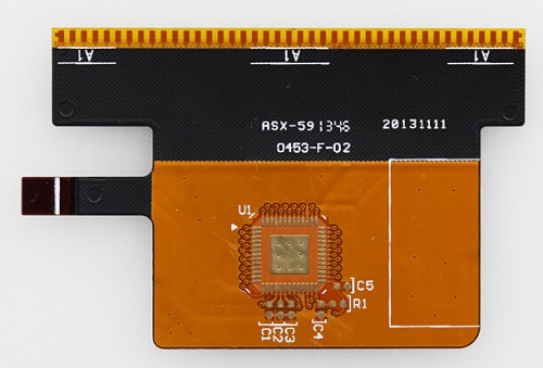 型 號:RM01C00187A層 數(shù):1板 厚:0.12mm材 料:單面有膠電解銅 厚:1/2 OZ表面處理:沉金2微英寸最小線寬/線距:0.1mm/0.08mm特 點:外形復雜