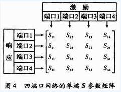 圖4為描述這種電路的S參數(shù)矩陣,這種S參數(shù)所描述的網(wǎng)絡(luò)可被看作是單端網(wǎng)絡(luò)。