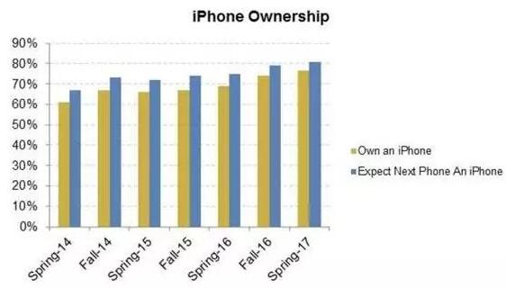研究顯示,有76%的年輕人渴望擁有一部iPhone手機(jī),而接受調(diào)查的81%都明確表示,下一部手機(jī)會(huì)購(gòu)買(mǎi)iPhone 8。