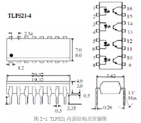 常用于反饋的光耦型號有TLP521、PC817等。這里以TLP521為例,介紹這類光耦的特性。圖2-1所示為光耦內(nèi)部結構圖以及引腳圖。