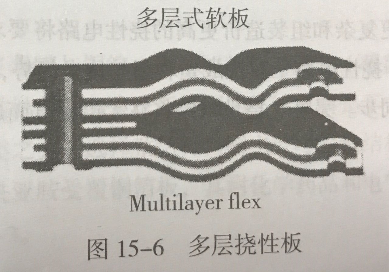 就是將3層或更多層的單面或雙面柔性電路板層壓在一起,通過鉆孔、化學(xué)沉銅和電鍍形成金屬化孔、在不同層間形成導(dǎo)電通路,稱之為多層柔性電路板。見圖15-6所示。