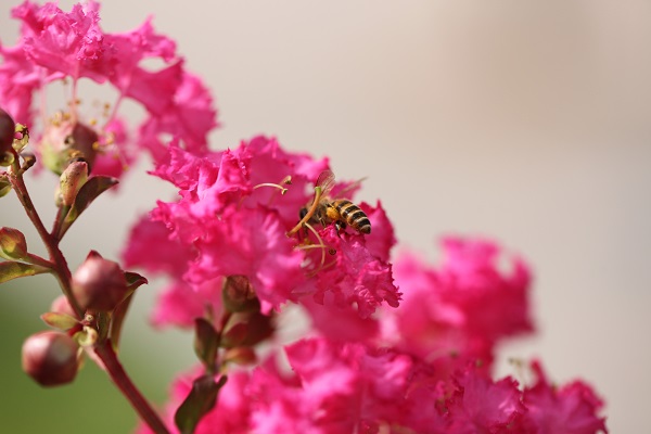 紫薇花雖然沒有月季的的姿態(tài)、沒有桂花的清香、也沒有牡丹的華貴。但它也有自己的風格,雅而不俗,花香雖不撲鼻,但淡淡的香味卻能讓人回味無窮。這栽種在生活區(qū)讓整個環(huán)境都美美噠!車間也更加地bulingbuling了!紫薇花的花語是:沉迷的愛、好運。這不連蜜蜂、蜻蜓都來撩了……
