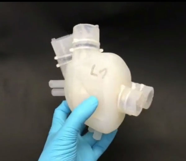 據(jù)報(bào)道說(shuō)這種人造心臟使用柔軟硅膠材料,由3D打印和失蠟鑄造技術(shù)制作而成,它重390克,比正常的心臟多80克。容積為679立方厘米,其里包含一個(gè)內(nèi)部結(jié)構(gòu)復(fù)雜的硅膠整體,跟活體心臟一樣有一個(gè)右心室和一個(gè)左心室,還有一個(gè)額外腔室將兩個(gè)心室隔開(kāi)。這個(gè)腔室起著類似肌肉的功能,能像泵一樣驅(qū)動(dòng)血液進(jìn)出心臟。