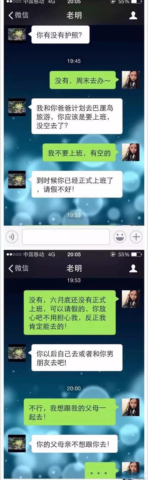 有一次住酒店,洗澡的時候我爸非要跟我媽一起洗。我:你們好污哦。我爸:你有本事也找個老公一起洗呀。我媽:單身狗。