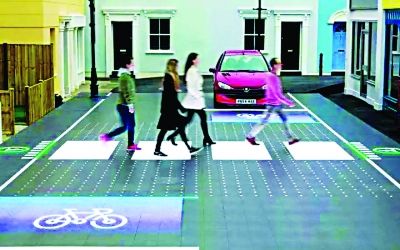 首先,智能人行橫道遵循“以人為先”原則。在沒人過馬路時,這條智能人行橫道是看不見的,而一旦有行人接近路口,LED面板就會亮起來,馬上顯示出斑馬線。想過馬路的行人只需站到位于道路邊上的紅色圓圈中,當圓圈變?yōu)榫G色時,馬路前方會出現(xiàn)白色的斑馬線。這時,兩側(cè)機動車道就全部被限行了,相當于紅燈,行駛的汽車會停下來,行人便可以安全地通過。當人們走過后,斑馬線就會消失,以減少對駕車者的視野干擾。