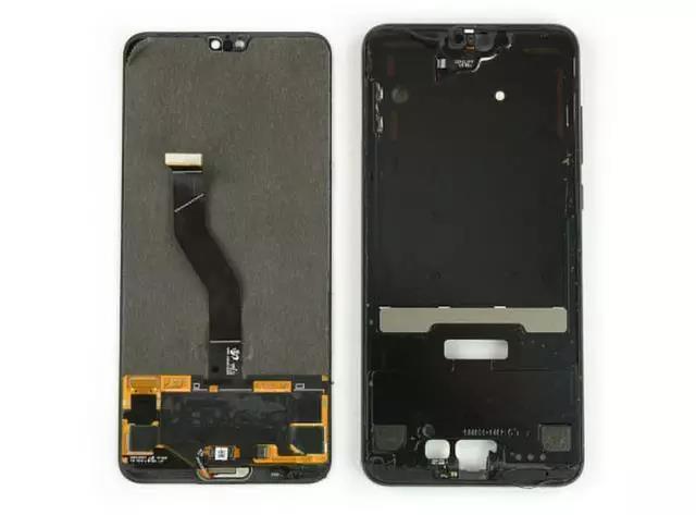 由于P20 Pro缺少Face ID和虹膜掃描硬件,所以拆下來的屏幕內的元器件也不是很多。