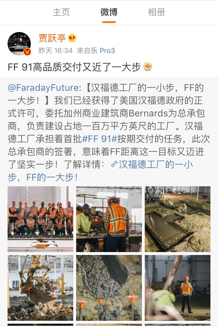 賈躍亭的造車夢要實現(xiàn)了?據(jù)汽車FPC小編悉, 6月8日消息 賈躍亭在微博發(fā)消息稱,距離FF 91高品質(zhì)交付又近了一大步。據(jù)介紹,F(xiàn)aradayFuture(簡稱FF)已經(jīng)獲得了美國漢福德當(dāng)?shù)卣恼皆S可,委托Bernards為總承包商,將負(fù)責(zé)建設(shè)占地一百萬平方英尺的FF漢福德工廠。