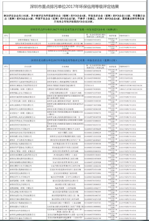 深圳深聯(lián)軟板廠獲深圳市重點排污單位2017年環(huán)保信用綠牌