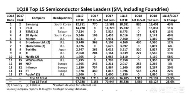 三星的產(chǎn)能已經(jīng)超越英特爾,位居第一了,可以看出來(lái),芯片產(chǎn)業(yè)的老大還是美國(guó),韓國(guó)、日本和歐洲瓜分了剩下的部分。