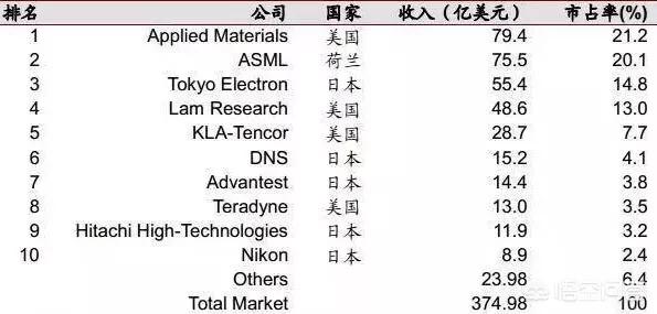 這里面美國(guó)、日本占據(jù)了絕對(duì)的優(yōu)勢(shì),綜合來(lái)看,在整個(gè)半導(dǎo)體行業(yè),最厲害的還是美國(guó)和日本,因?yàn)榘雽?dǎo)體設(shè)備實(shí)在是比半導(dǎo)體制造還要復(fù)雜難攻的技術(shù)。
