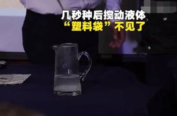實(shí)驗(yàn)者將白色的塑料袋放在透明的水瓶中,不一會,白色塑料袋果然與水發(fā)生了溶解。