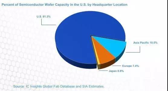 在2017年,81%美國本土的半導體硅晶圓是被美國半導體公司消耗。而總部位于亞太地區(qū)的公司,只消耗了美國總晶圓的10%。
