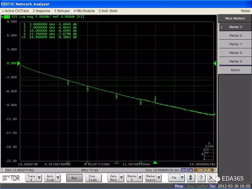 同樣線寬表面覆膜微帶線的S21好于不蓋膜情況,所以覆膜是必要的,同樣的問題,覆膜的材料等不一樣同樣的思考,也會(huì)帶來信號(hào)損耗的不一樣。這個(gè)結(jié)論和信號(hào)線走內(nèi)層同樣的線寬損耗小很多一個(gè)道理。