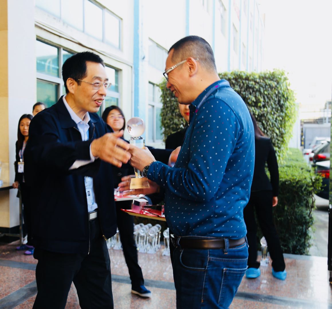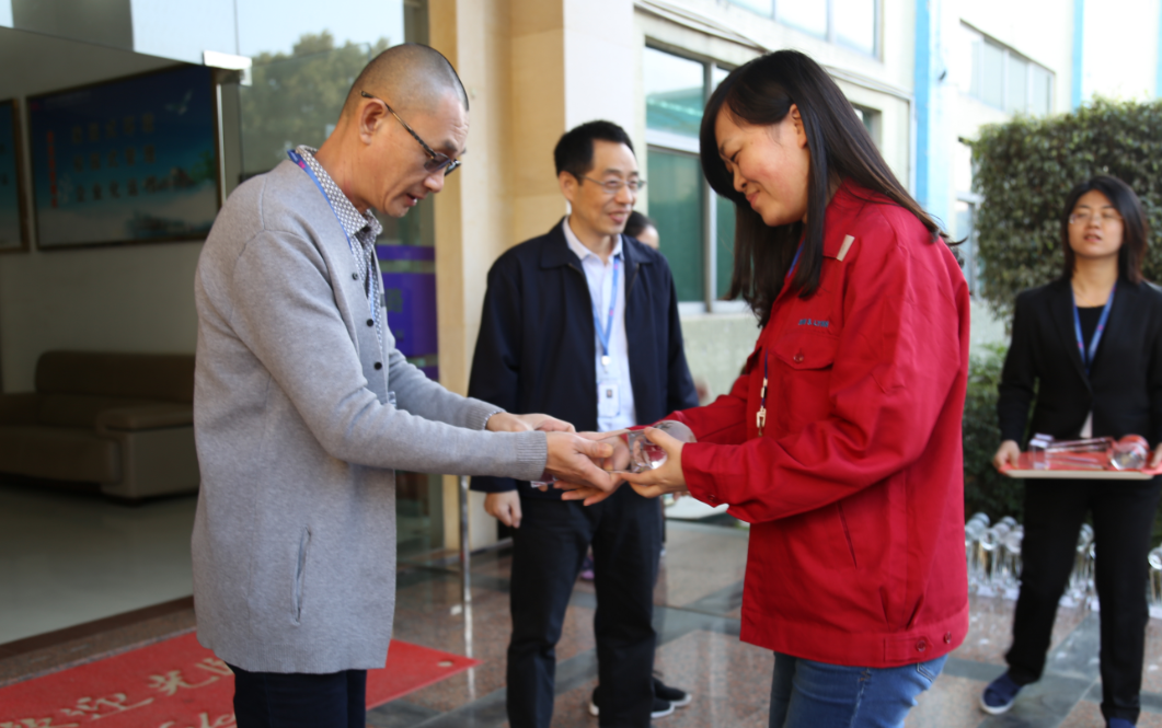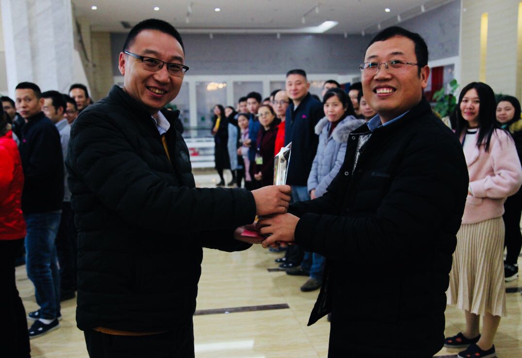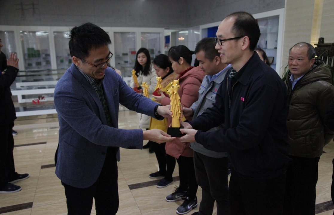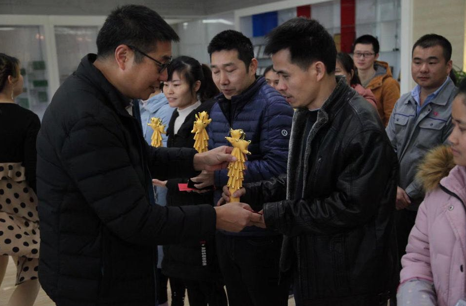 徐主席、許總和軟板褚總為榮譽(yù)員工頒獎(jiǎng)(贛州深聯(lián))