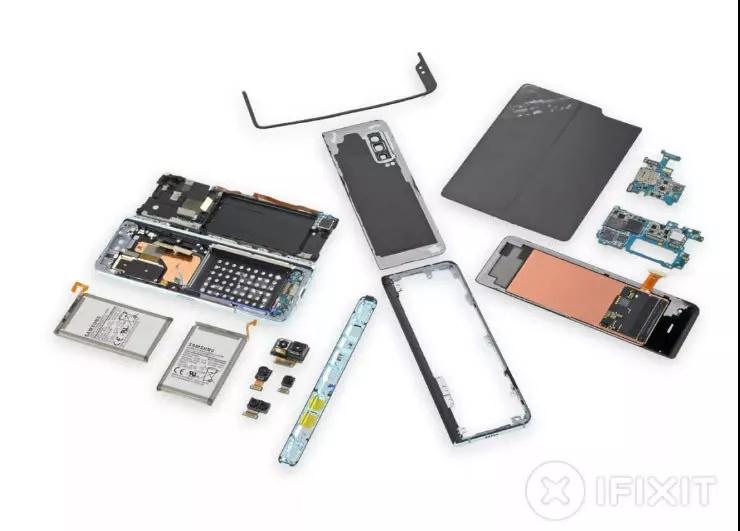 iFixit網(wǎng)站還發(fā)現(xiàn)了在Galaxy Fold內(nèi)部?jī)蓚€(gè)電池粗糙地粘在一起。