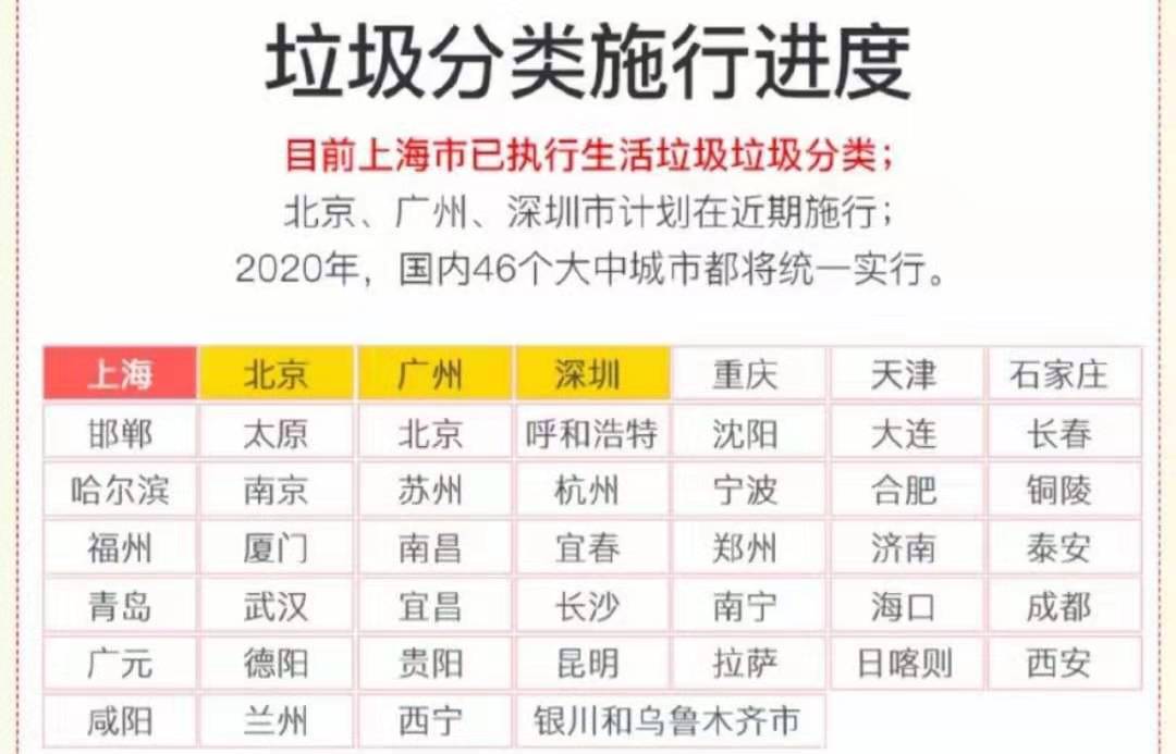 到 2020年底,先行先試的46個(gè)重點(diǎn)城市基本建成垃圾分類處理系統(tǒng)。2025年前,全國地級(jí)及以上城市要基本建成垃圾分類處理系統(tǒng)。來看看有沒有你的城市。