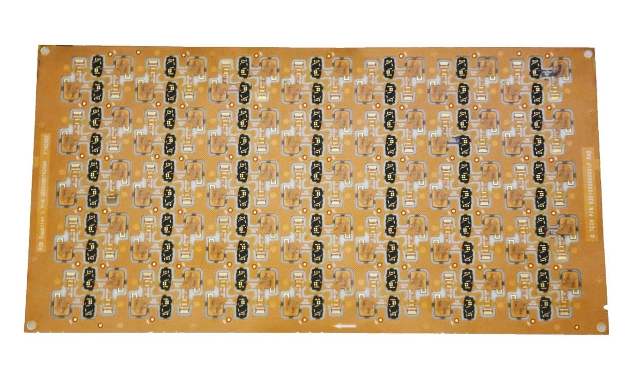型 號:RM01C00187A層 數(shù):1板 厚:0.12mm材 料:單面有膠電解銅 厚:1/2 OZ表面處理:沉金2微英寸最小線寬/線距:0.1mm/0.08mm特 點:外形復雜
