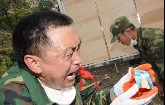 ▲2008年5月15日,在北川縣城參與救助的解放軍官兵發(fā)現(xiàn)兒童的照片,忍不住痛哭。