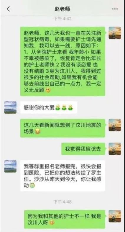 ▲這是四川省第四人民醫(yī)院內(nèi)科四病區(qū)護(hù)士佘沙兩次請戰(zhàn)出征武漢的理由。