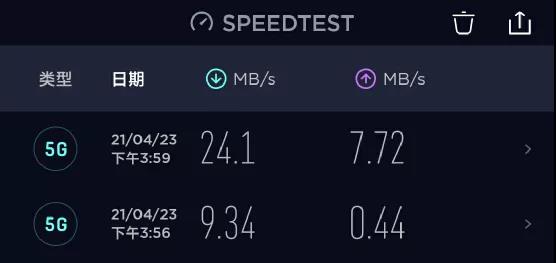 經(jīng)過測試,在室內(nèi) 5G 信號較差的環(huán)境下,速度提升依然明顯。