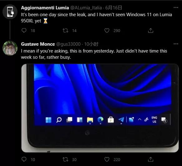現(xiàn)在,其中一位開發(fā)人員在Lumia 950 XL上成功運(yùn)行了Windows 11系統(tǒng),Gustave Monce在Twitter上向我們分享了這一喜訊,并表示他還在努力適配更多內(nèi)容。