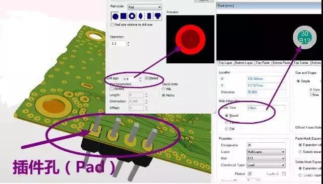 插件孔(Pad孔):需要插器件焊接的引腳孔,焊盤表面必須裸露出來。