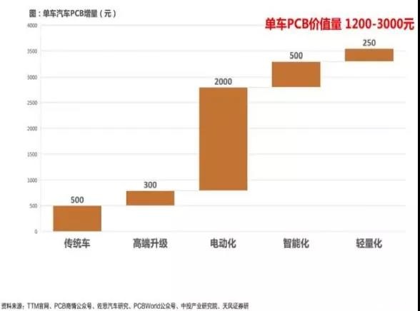 汽車PCB增長動(dòng)力來自于新能源汽車的滲透&單車PCB價(jià)值量提升。