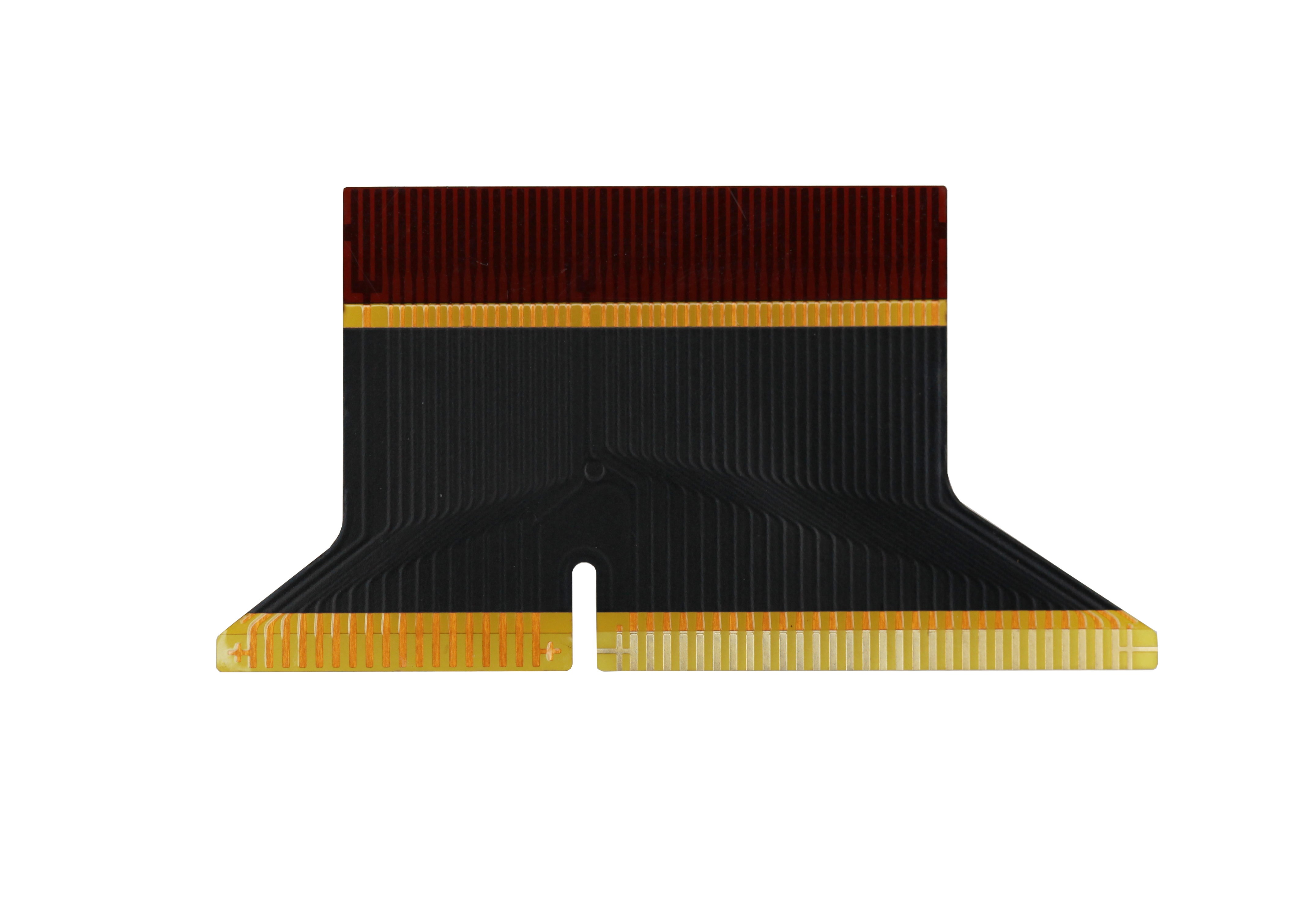 型 號(hào):RM01C00187A層 數(shù):1板 厚:0.12mm材 料:?jiǎn)蚊嬗心z電解銅 厚:1/2 OZ表面處理:沉金2微英寸最小線寬/線距:0.1mm/0.08mm特 點(diǎn):外形復(fù)雜
