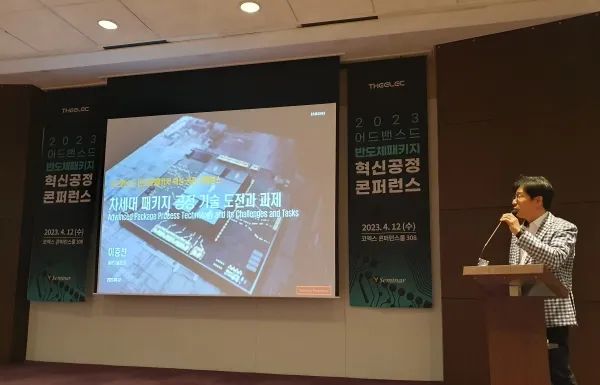 三星電子團隊負責人Lee Chung-seon在“2023年先進半導體封裝創(chuàng)新工藝大會”上發(fā)表主題演講▲