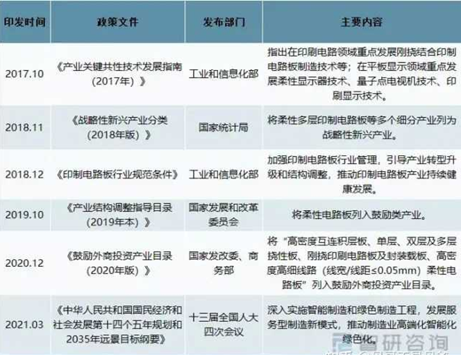 FPC行業(yè)主要產(chǎn)業(yè)政策一覽表