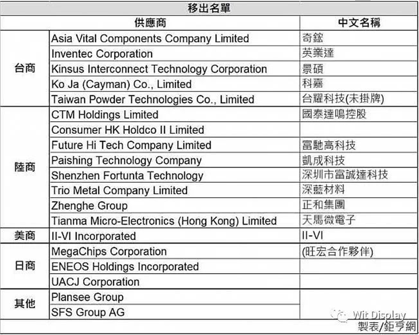手機(jī)無線充軟板廠深深了解到,被剔除出蘋果供應(yīng)鏈的8家中國廠商分別為:CTM Holdings Limited、Consumer HK Holdco II Limited、富馳高科技、凱成科技、深圳市富誠達(dá)科技、深藍(lán)材料、正和集團(tuán)、天馬微電子,以及中國臺灣的奇鋐、英業(yè)達(dá)、景碩、科嘉及臺耀科技。值得注意的是,去年科嘉與臺耀科技才剛加入蘋鏈,今年就被移出。