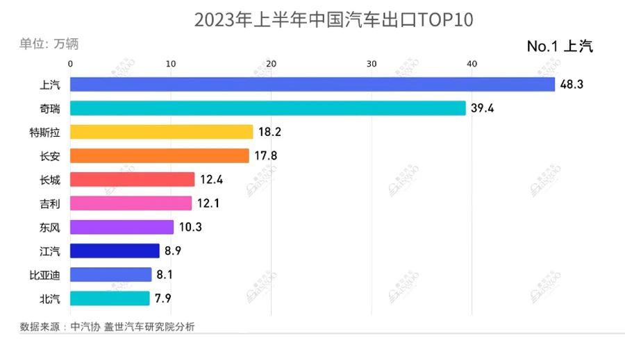 盡管中國汽車出口一度受到了特斯拉等外資車企的拉動,但據(jù)蓋世汽車統(tǒng)計數(shù)據(jù),2023年上半年中國汽車出口十大車企依次為:上汽48.3萬輛,奇瑞39.4萬輛,特斯拉18.2萬輛,長安17.8萬輛,長城12.4萬輛,吉利12.1萬輛,東風10.3萬輛,江汽8.9萬輛,比亞迪8.1萬輛,北汽7.9萬輛??梢姡€是以中國本土車企出口為主。而這個巨大的變化,僅僅發(fā)生在幾年間。