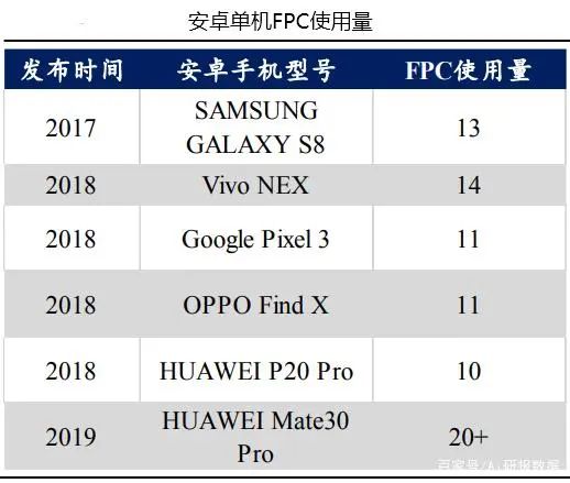 目前,在手機(jī)輕薄化趨勢下,華為、三星、Vivo、OPPO以及Google都有各自的手機(jī)型號采用了FPC軟板。