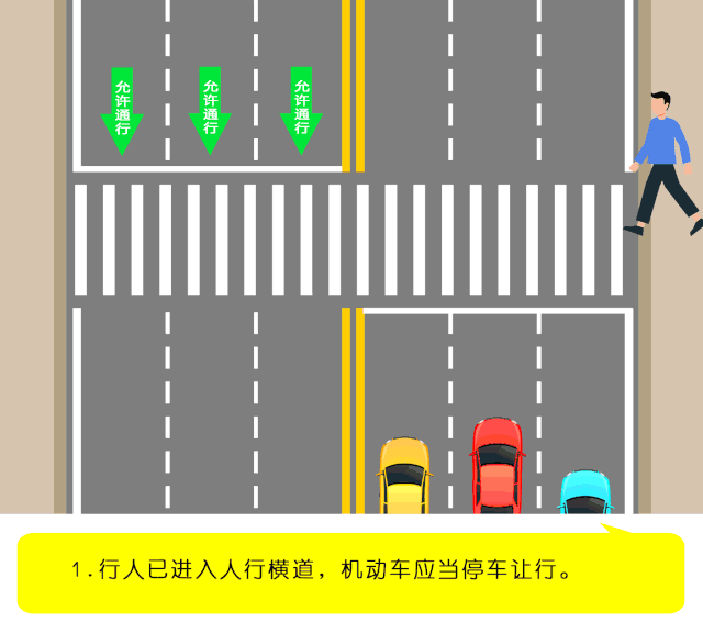 第四十七條規(guī)定,機動車行經(jīng)人行橫道時,應(yīng)當(dāng)減速行駛;遇行人正在通過人行橫道,應(yīng)當(dāng)停車讓行。機動車行經(jīng)沒有交通信號的道路時,遇行人橫過道路,應(yīng)當(dāng)避讓。