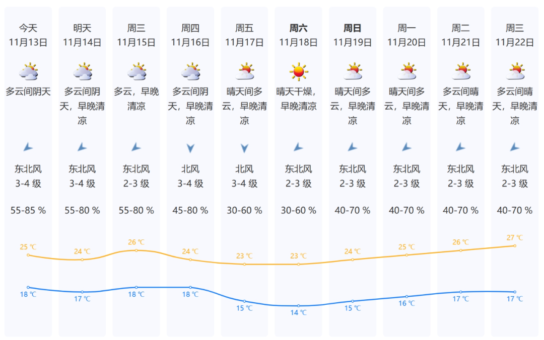 FPC廠之最低氣溫或降至14℃!深圳入秋了?
