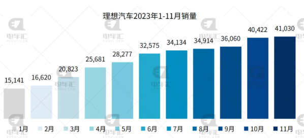 理想汽車11月交付新車41,030輛,同比增長172.9%,環(huán)比增長2%。截至2023年11月30日,理想汽車全年累計交付325,677輛,提前達成2023年30萬輛銷量目標。