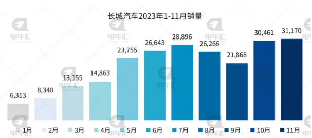 長城汽車新能源乘用車11月銷量31,170輛,同比增142%,環(huán)比增長%;今年1-11月累計銷售231,730輛,同比增長92%,前三季度環(huán)比持續(xù)提升,連續(xù)8個月實現(xiàn)同比增長。