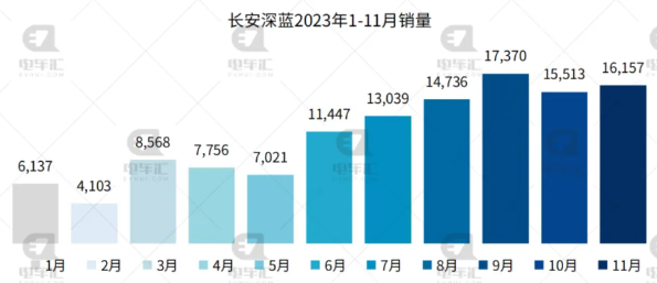 深藍汽車11月交付新車16,157輛,同比增長155%,環(huán)比增長4%。今年1-11月,深藍汽車共交付新車105,690輛。
