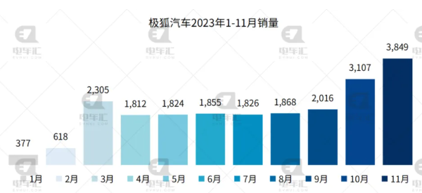 極狐汽車11月交付新車3,849輛,環(huán)比增長24%。今年1-11月,極狐汽車累計銷量21,457輛。