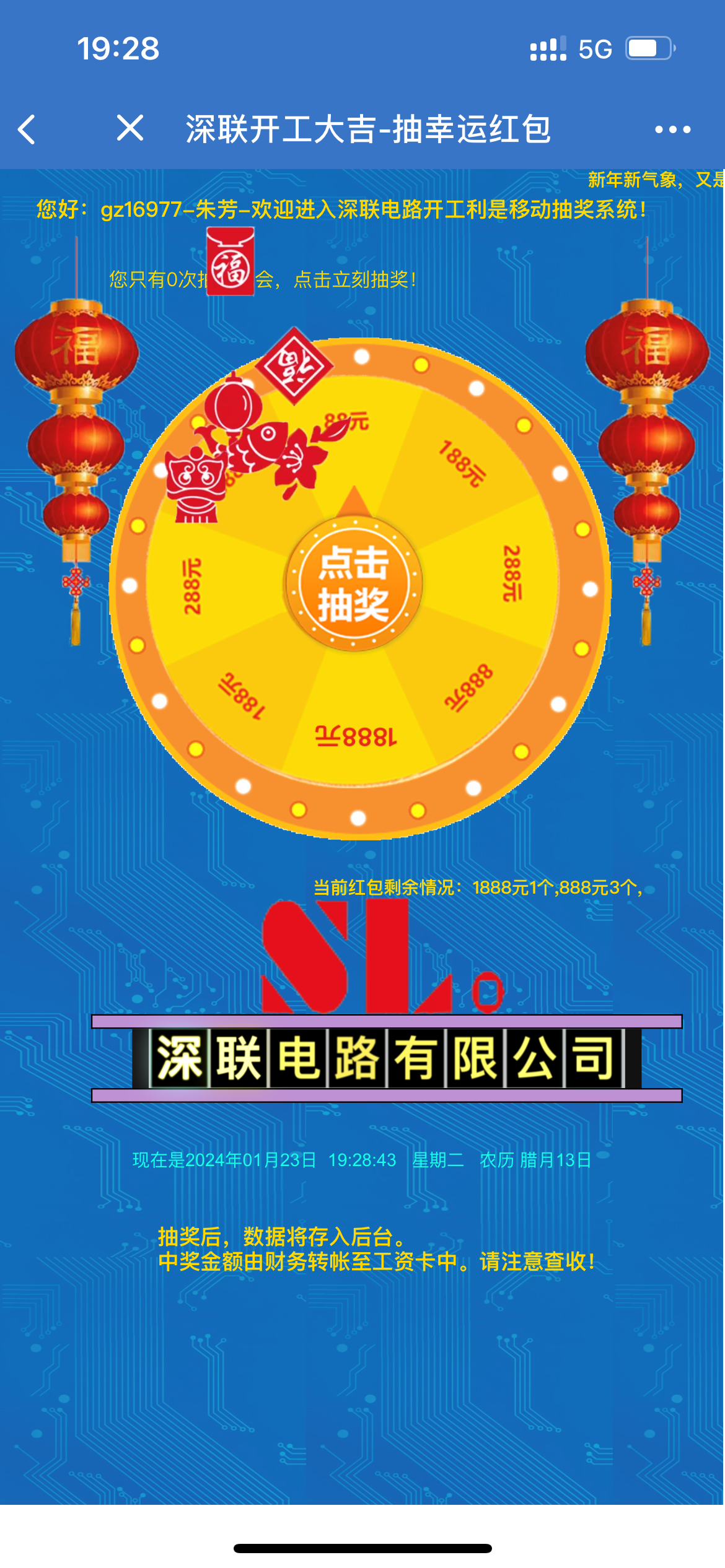 中獎(jiǎng)名單會(huì)公布于開工大吉公告中,抽獎(jiǎng)金額由財(cái)務(wù)工作人員發(fā)放至工資卡中。