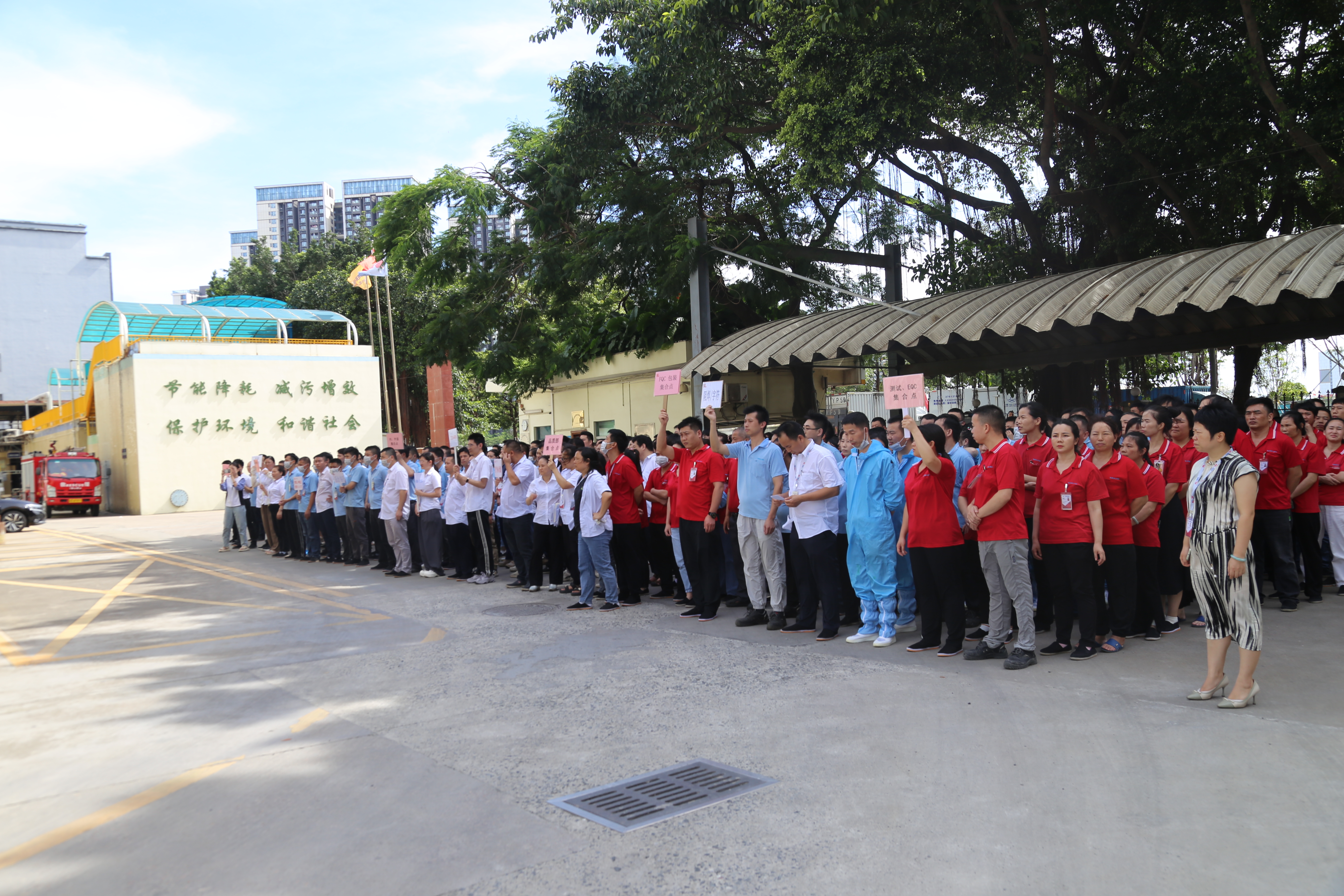 一時(shí)間,廠區(qū)疏散警鈴大作,全體員工在各部門負(fù)責(zé)人的組織下,用衣物或毛巾捂住口鼻,彎腰低姿,迅速而有序地朝著逃生出口撤離。大家行動(dòng)敏捷,毫不慌亂,
