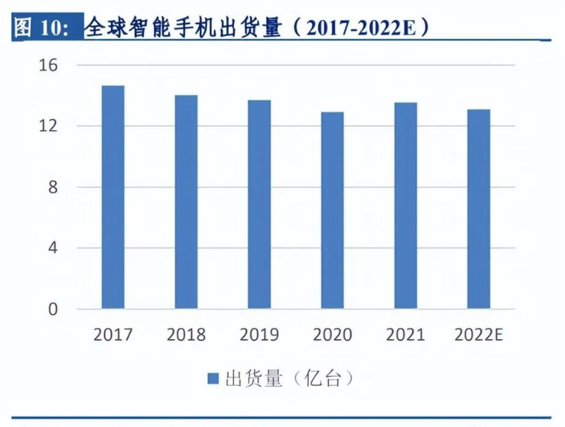 軟板在智能手機(jī)中的應(yīng)用涉及顯示、電池、觸控、連接、攝像頭等多功能模組模塊。一般而言,一部智能手機(jī)大約需要10~15片F(xiàn)PC。當(dāng)前智能手機(jī)已步入存量時(shí)代,加之缺芯、疫情、智能手機(jī)更換周期延長等多種因素疊加,導(dǎo)致以手機(jī)為代表的消費(fèi)電子出貨量下降明顯。根據(jù)IDC數(shù)據(jù),2017~2020年全球智能手機(jī)出貨量不斷下降,2021年出貨量13.55億臺(tái),預(yù)計(jì)2022年為13.1億臺(tái)。中國市場的智能手機(jī)出貨量與全球的變動(dòng)趨勢相同,預(yù)計(jì)2022年中國智能手機(jī)出貨量為3.10億臺(tái)。但隨著智能手機(jī)創(chuàng)新型應(yīng)用技術(shù)的發(fā)展,5G通訊技術(shù)普及、攝像模組升級(jí)、屏下指紋識(shí)別、OLED屏、折疊屏等新興技術(shù)在智能手機(jī)上的應(yīng)用不斷深化,有望拉動(dòng)智能手機(jī)出貨需求回升,為FPC在智能手機(jī)領(lǐng)域的發(fā)展創(chuàng)造新的增長點(diǎn)。